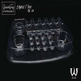"La bandeja desechable Quicktray está diseñada para un solo uso y está hecha de plástico apto para uso alimentario."