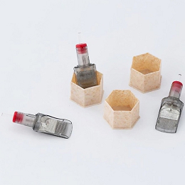 - Caps para tintas fabricados especialmente para tamaños de más de 27 tipos de agujas diferentes.