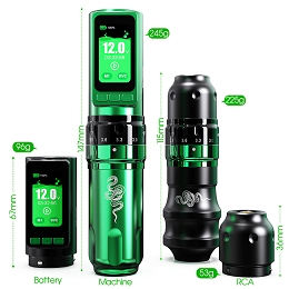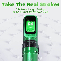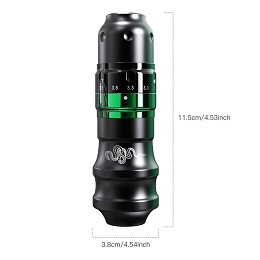 Equipada con el motor sin núcleo Mcore-C3 de última generación, la máquina ofrece trazos suaves y precisos con un equilibrio ideal tanto para delinear como para sombrear. Su función de arranque automático garantiza la compatibilidad incluso con los cartuchos de aguja más grandes, activándose automáticamente al encenderla. El mecanismo de clic facilita el ajuste de la profundidad de la aguja, y la máquina es compatible con todos los cartuchos de aguja universales tipo Cheyenne.