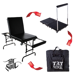 El TATSoul X ha mantenido su posición durante años como uno de nuestros artículos de muebles más vendidos hasta la fecha. Es la única mesa portátil para tatuajes diseñada específicamente para el artista. En colaboración con el artista Mickey Ratt, nos enorgullece ofrecerle la mesa ideal para el artista en movimiento. Ideal para convenciones, viajes y espacios de estudio más ajustados, tatúe mejor con un cliente más cómodo, además de una versatilidad y fiabilidad óptimas.