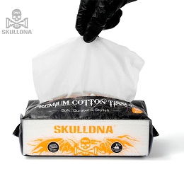 Los pañuelos SKULLDNA son de algodón premium, hipoalergénicos y diseñados para uso profesional en tatuajes. Suaves, absorbentes y sin pelusa, son ideales para limpiar el exceso de tinta, limpiar la piel o aplicar productos de cuidado posterior durante las sesiones de tatuaje.