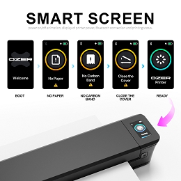 La función de pantalla inteligente proporciona actualizaciones sobre el estado de la batería, la conexión Bluetooth y el estado de impresión, haciéndola increíblemente fácil de usar.