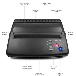 - Nuestra impresora térmica para tatuajes pesa solo 1,6 kg / 3,5 lb, tiene una velocidad de impresión de transferencia rápida, baja temperatura, poco ruido y un rendimiento estable. Tamaño de papel de transferencia compatible: Aproximadamente 8.5 pulgadas x 11 pulgadas.