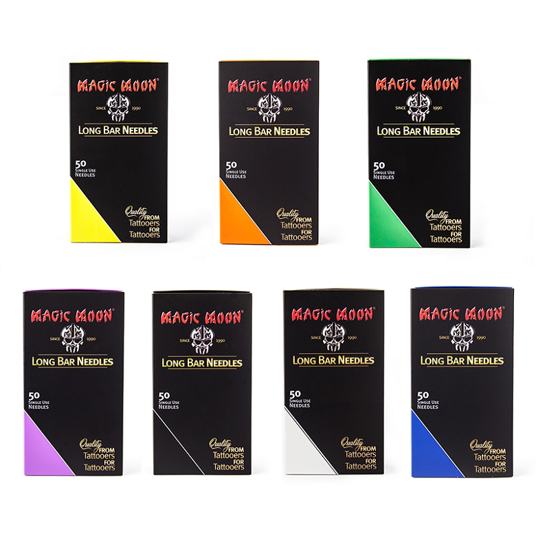 Las agujas para tatuar Magic Moon están consideradas, por su excelente calidad, como una de las mejores agujas para tatuar en el mundo del tatuaje. La calidad de la producción del acero alemán con que están fabricadas, y sus posteriores controles antes de su envasado, es lo que diferencia a estas agujas. Magic Moon asegura que todas las agujas se controlan de forma individual durante y después de la producción.