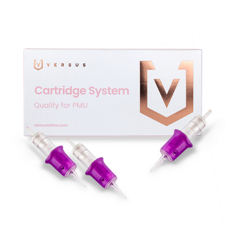 El cartucho Versus para micropigmentación tiene un diseño ergonómico, en forma de grip, que se adapta perfectamente a los dedos y permite un buen agarre y una mayor relajación para la mano. Está dotado de una membrana triangular que evita que refluya la tinta al interior de la máquina y con una elasticidad media que logra que la aguja tenga un recorrido suave y alineado.